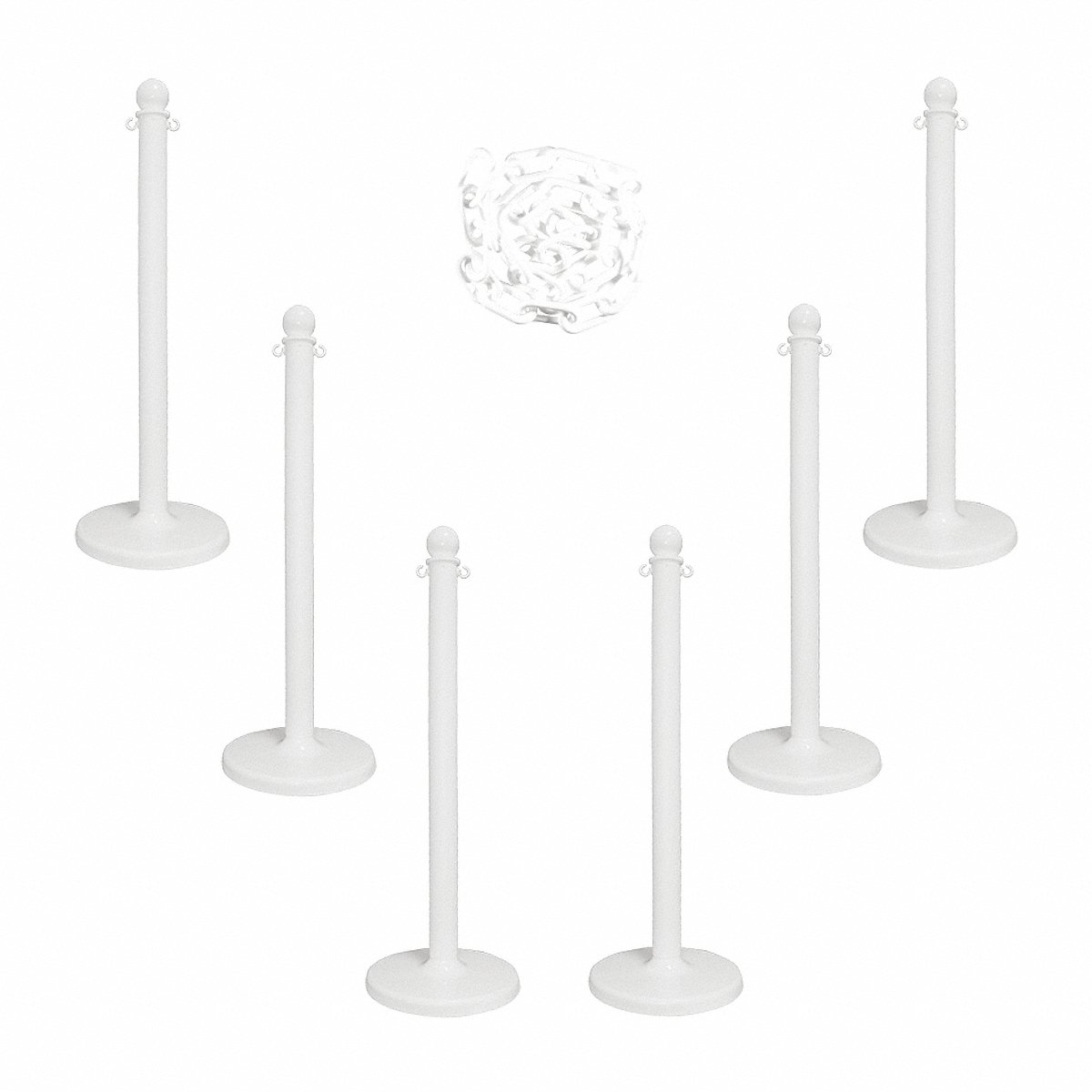Includes: (6) Medium Duty Stanchions, 50 ft of 2 in Plastic Chain