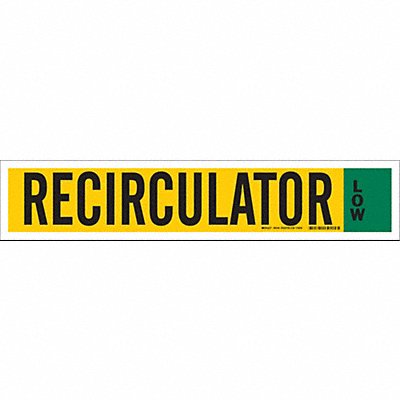 Ammonia Pipe Markers Legend Recirculator Low IIAR Abbreviation (Blank) Pressure Level Low Fits Pipe O.D. 8 in and Larger Legend Color Black Background Color Yellow/Green Material Vinyl Height 4 In. Width 24 In.