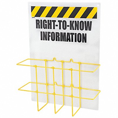 Right-To-Know Center Mounting Type Wall Language English Legend Right-To-Know Information Height 20 In. Width 14 In. Depth 5 In. Station Mounting Type Wire Rack with Sign Station Sign Color White Station Holder Material PVC Coated Steel Binder Chain Included No