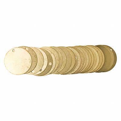 Blank Tag Material Brass Color Brass Height 2 In. Width 2 In. Shape Round Indoor/Outdoor Usage Outdoor Only Operating Temp Range -40 Degrees F to 1200 Degrees F Hole Size 3/16 In. Character Series Blank Character Type Blank Tag Shape Round Package Quantity 25