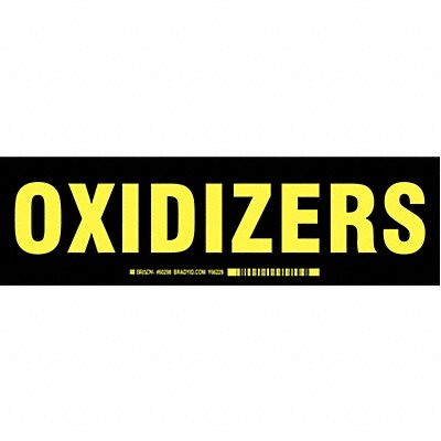 Cabinet Label Language English Legend Oxidizers Header No Header Material Polyester Height 3-1/2 In. Width 12 In. Legend Color Yellow Background Color Black Legend Style Text Shape Rectangle Indoor/Outdoor Usage Indoor/Outdoor