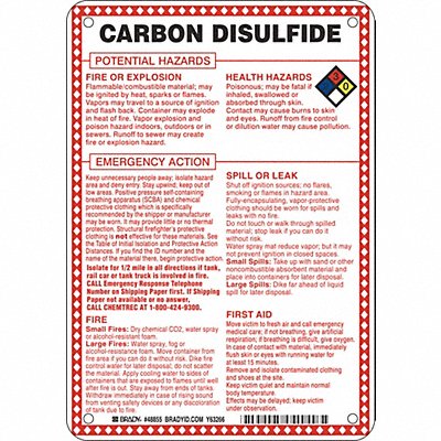 Chemical Sign Carbon Disulfide Potential Hazards Fiberglass Height 10 In. Width 7 In. Header No Header Legend Style Symbol and Text Language English Mounting Style Surface Thickness 0.100 In. Sign Shape Rectangle Operating Temp Range -40 Degrees to 194 Degrees F Retroreflective Grade Not Retroreflective