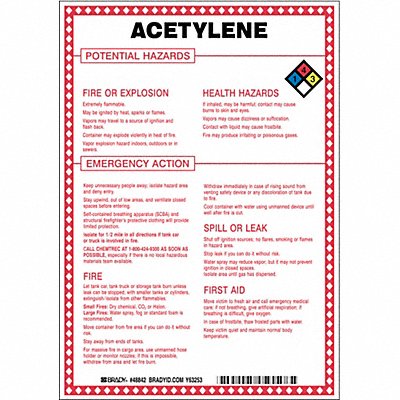 Chemical Sign Acetylene Potential Hazards Fiberglass Height 10 In. Width 7 In. Header No Header Legend Style Symbol and Text Language English Mounting Style Surface Thickness 0.100 In. Sign Shape Rectangle Operating Temp Range -40 Degrees to 194 Degrees F Retroreflective Grade Not Retroreflective