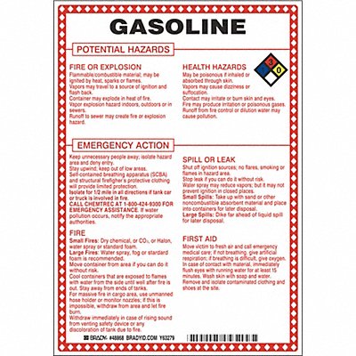 Chemical Sign Gasoline Potential Hazards Fiberglass Height 10 In. Width 7 In. Header No Header Legend Style Symbol and Text Language English Mounting Style Surface Thickness 0.100 In. Sign Shape Rectangle Operating Temp Range -40 Degrees to 194 Degrees F Retroreflective Grade Not Retroreflective