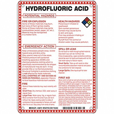 Chemical Sign Hydrofluoric Acid Potential Hazards Fiberglass Height 10 In. Width 7 In. Header No Header Legend Style Symbol and Text Language English Mounting Style Surface Thickness 0.100 In. Sign Shape Rectangle Operating Temp Range -40 Degrees to 194 Degrees F Retroreflective Grade Not Retroreflective