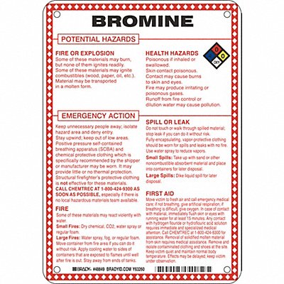 Chemical Sign Bromine Potential Hazards Fiberglass Height 10 In. Width 7 In. Header No Header Legend Style Symbol and Text Language English Mounting Style Surface Thickness 0.100 In. Sign Shape Rectangle Operating Temp Range -40 Degrees to 194 Degrees F Retroreflective Grade Not Retroreflective
