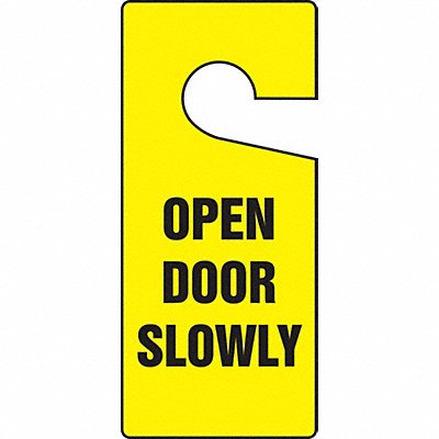 Legend/Background Color Black/Yellow Door Knob Hanger Tag Legend Open Door Slowly Reverse Side Legend Open Door Slowly Height 9 In. Width 4 In. Tag Color Yellow Background Color Yellow Language English Shape Rectangle Tag Material Plastic Subject Matter Accident Prevention Package Quantity 10