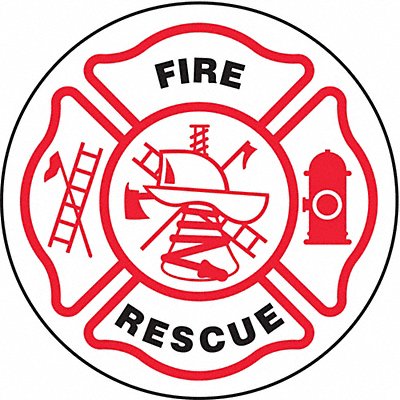 Hard Hat Label Language English Legend Fire Rescue Header No Header Material Vinyl Legend Color Black Background Color Red White Legend Style Symbol and Text Shape Circle