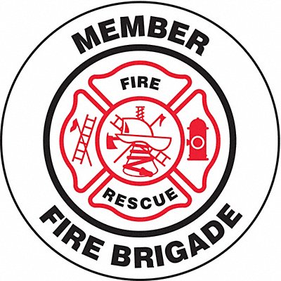 Hard Hat Label Language English Legend Member Fire Brigade Header No Header Material Vinyl Legend Color Black Background Color Red White Legend Style Symbol and Text Shape Circle