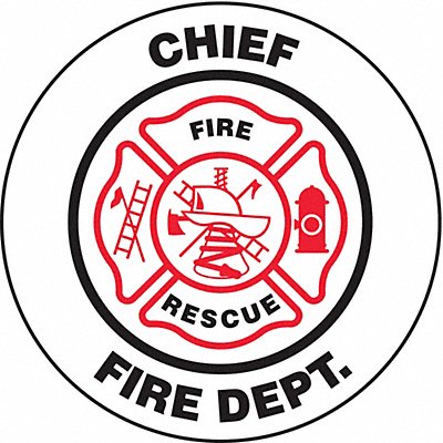 Hard Hat Label Language English Legend Chief Fire Dept Header No Header Material Vinyl Legend Color Black Background Color Red White Legend Style Symbol and Text Shape Circle