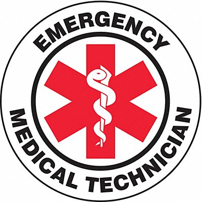Hard Hat Label Language English Legend Emergency Medical Technician Header No Header Material Vinyl Legend Color Black Background Color Red White Legend Style Symbol and Text Shape Circle