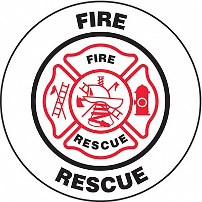 Hard Hat Label Language English Legend Fire Rescue Header No Header Material Vinyl Legend Color Black Background Color Red White Legend Style Symbol and Text Shape Circle