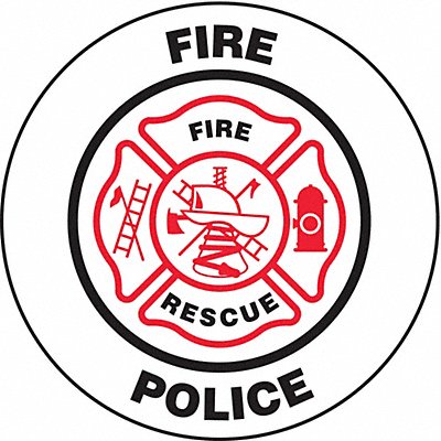 Hard Hat Label Language English Legend Fire Police Header No Header Material Vinyl Legend Color Black Background Color Red White Legend Style Symbol and Text Shape Circle