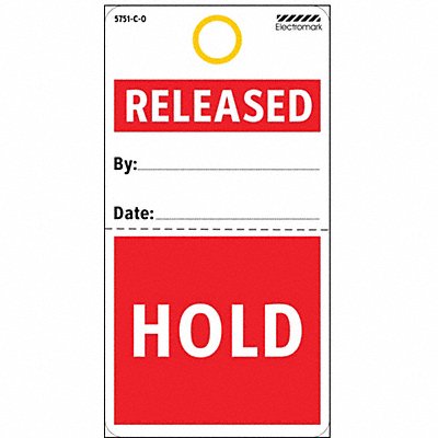 Quality Control Tag Legend Released Hold Height 5-3/4 In. Width 3 In. Header Released Legend Color Black Background Color White Language English Shape Rectangle Write on Surface Yes Tag Color White Includes Cable Ties Package Quantity 25