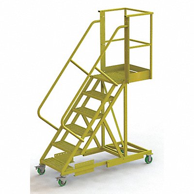 Supported Cantilever Rolling Ladder Material Steel Unassembled Handrails Included Yes Platform Height 60 In. Platform Width 24 In. Platform Depth 20 In. Overall Height 102 In. Load Capacity 300 lb. Handrail Height 42 In. Bottom Width 41 In. Base Depth 72 In. Number of Steps 6 Climbing Angle 50 Degrees Ladder Actuation Locking Casters Step Depth 8-1/2 In. Step Width 24 In. Step Tread Perforated Finish Powder Coated Color Yellow Standards OSHA 1910.29 and ANSI A14.7
