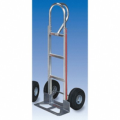 Modular Hand Truck Load Capacity 500 lb. Hand Truck Handle Type Continuous Frame Loop Overall Height 52 In. Overall Width 21 In. Overall Depth 18-1/2 In. Noseplate Width 18 In. Noseplate Depth 7-1/2 In. Wheel Type Pneumatic Wheel Width 3-1/2 In. Wheel Diameter 10 In. Wheel Bearings Sealed Material Aluminum Color Silver Aluminum Finish Unassembled For Use With Material Handling